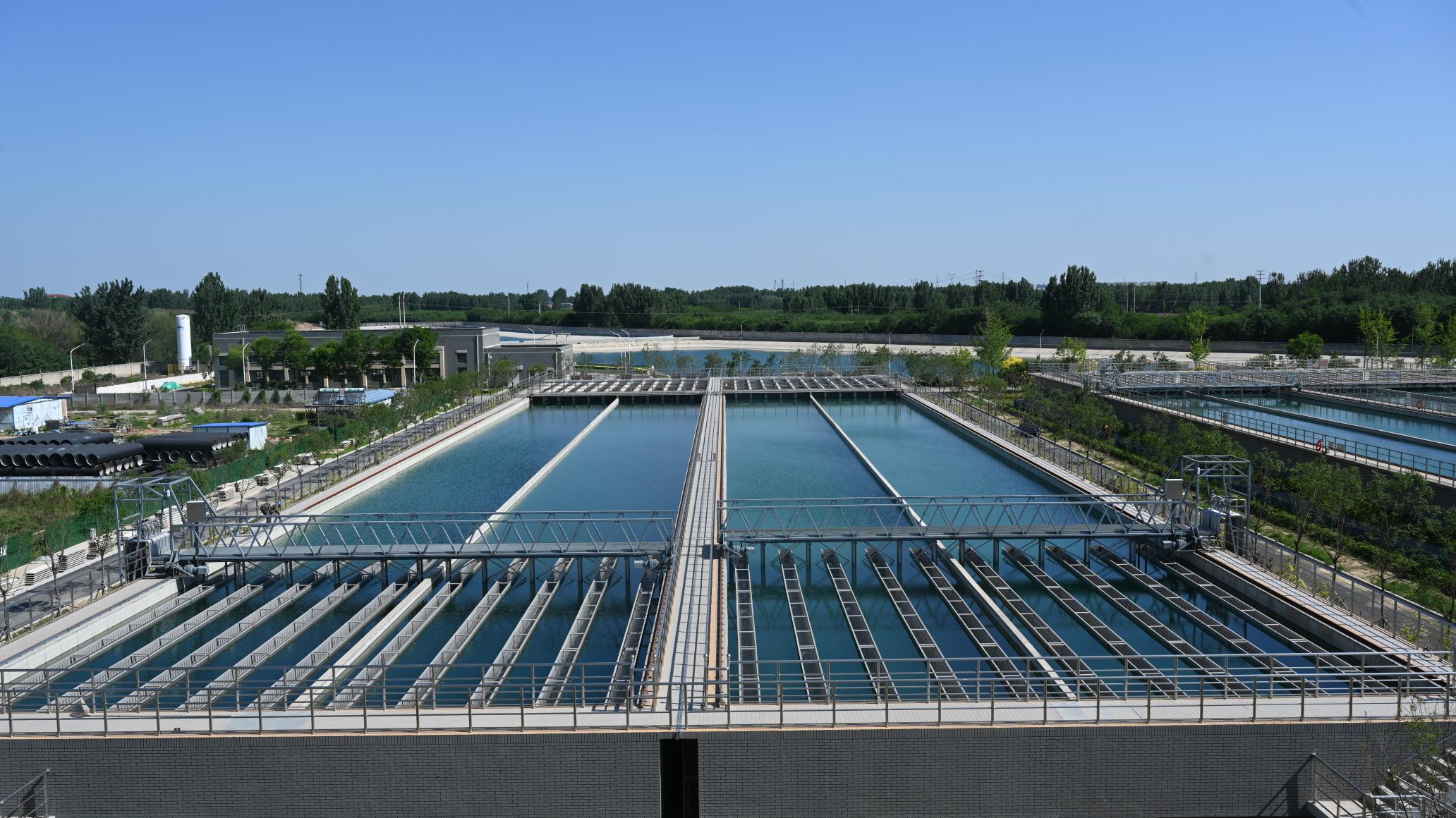 廊坊市地表水厂作为造福廊坊人民的民生工程,建筑设计采用了国内先进的理念和技术,水源采自丹江口水库作为廊坊主力饮用水源,大幅提高了市区的供水安全,保护了地下水资源。该工程占地450亩,总建设规模为日供水50万吨,本期建设规模为日供水15万吨,现通水运行部分达到日供水30万吨,为保障廊坊市城区的供水安全奠定了坚实基础。